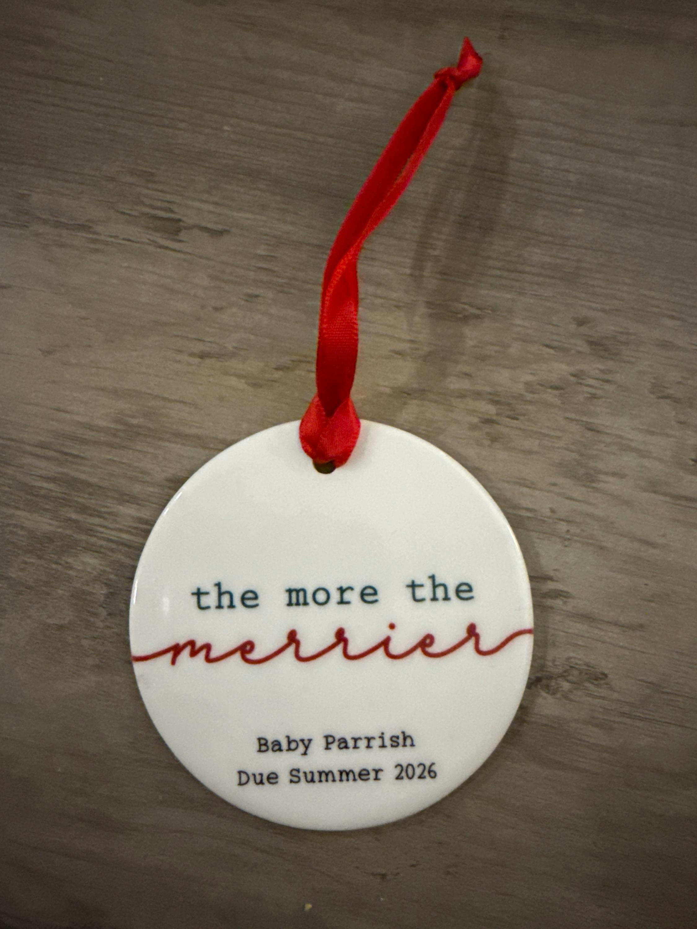 The More the Merrier Pregnancy Announcement Ceramic Christmas Ornament